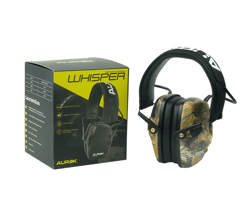 O Abafador Eletrônico Whisper Aurok Camuflado é um acessório essencial para seu treino de tiro, ideal para quem procura mais segurança e conforto na hora de atirar. Esse abafador para tiro esportivo atenua sons de 22 dB, protegendo-o de altos ruídos e amplificando o som ambiente.